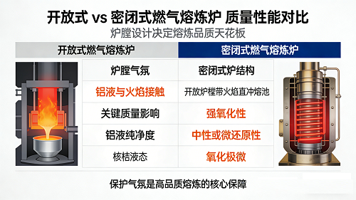 这是个切中要害的好问题。直接给你核心答案:在同等原料和操作水平下,密闭式燃气熔炼炉产出的铝液质量,尤其是纯净度,通常显著优于开放式炉。